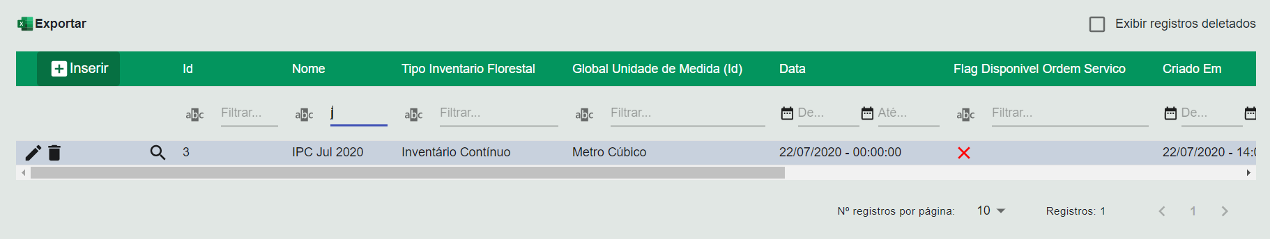 Inventário Florestal – Inventário Florestal que será usado para estimativas de volume produzido e consumo de materiais, cadastrado em Inventário Florestal / Inventário Florestal / Inventário Florestal [148].;