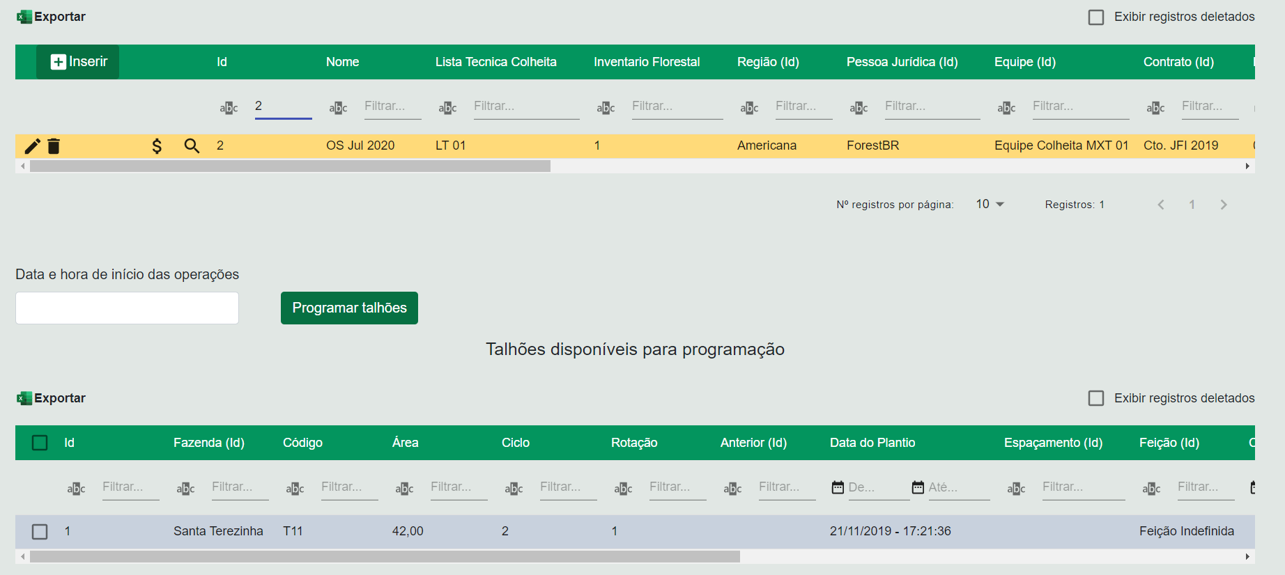 Talhão Inventário Florestal – Id dos resultados de inventário para o talhão para o qual a operação foi programada no inventário selecionado para a ordem de serviço, preenchido automaticamente pelo sistema no momento da programação;